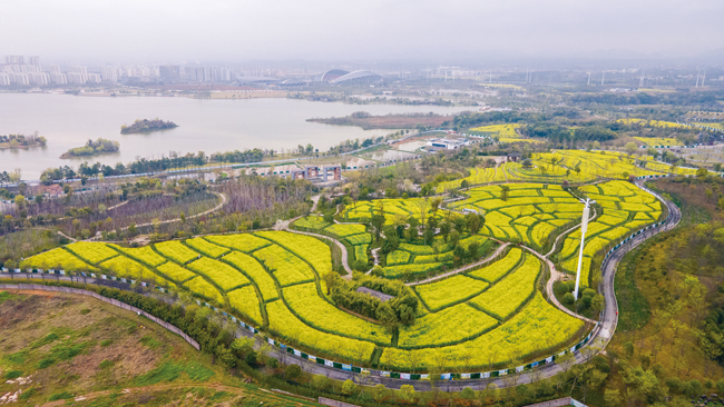 近日,金華市金華開發(fā)區(qū)湖海塘公園西側(cè),新建的階梯狀生態(tài)型油菜花田亮相。作為金華市區(qū)最大的城市公園,湖海塘公園2021年開始實施綠化提檔升級工程,充分運用都市農(nóng)業(yè)的改造理念,將部分淺水域和緩坡區(qū)改造成水田和旱田,融入部分城市休閑功能,達到農(nóng)業(yè)生產(chǎn)與旅游體驗雙提升的效果。(胡肖飛)