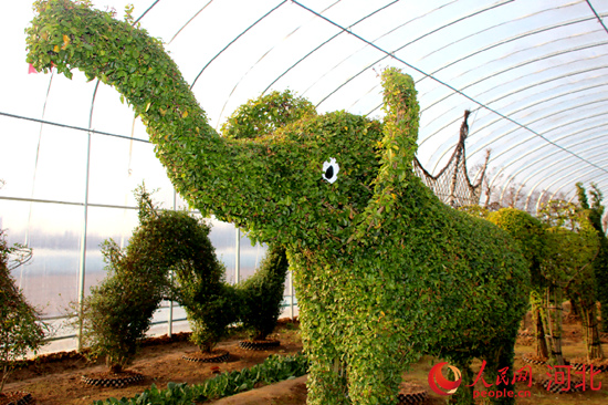 人民網(wǎng)石家莊3月20日電 (周博)早春三月,修枝剪葉正當(dāng)時。大象、梅花鹿、長頸鹿……走近河北定州孟亮苗圃基地,原本雜亂的枝條通過村民們的巧手,變幻出不同的造型矗立大棚內(nèi),400余株苗木長勢喜人,好不熱鬧。