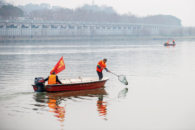 3月22日,金華蘭溪市蘭江江面上,護水人員駕駛打撈船巡河,及時清理漂浮物。當(dāng)天是第三十屆“世界水日”。近年來,蘭溪市護水人員每天在水面上巡邏,發(fā)現(xiàn)垃圾和漂浮物及時清理,確保江水干凈。(胡肖飛)
