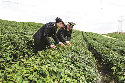 海關(guān)關(guān)員在茶葉種植基地查看農(nóng)事活動(dòng)