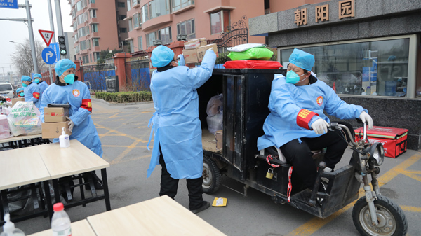 北京朝陽(yáng)園小區(qū):一線防疫人員當(dāng)臨時(shí)"騎手" 保障居民生活