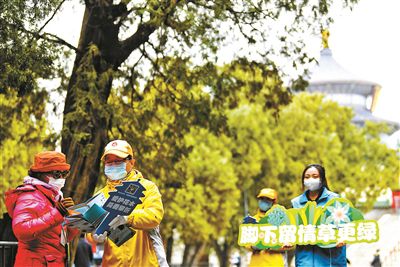“又是一年春來到,天壇公園即將迎來百花競相開放、處處鳥語花香的生機(jī)時節(jié)。我們增強(qiáng)巡視力度頻次,著統(tǒng)一工服、佩戴紅袖標(biāo),根據(jù)花期精準(zhǔn)管理。對未規(guī)范佩戴口罩、扎堆聚集的游客耐心勸導(dǎo),及時勸阻壇墻刻畫、采挖野菜、采摘果實、攀折花木、踐踏草地等不文明行為……”3月25日,天壇公園在祈年殿景區(qū)西側(cè)舉辦“愛護(hù)天壇 文明有我”文明游園啟動儀式,天壇公園工作人員向廣大游客市民發(fā)出文明游園倡議。