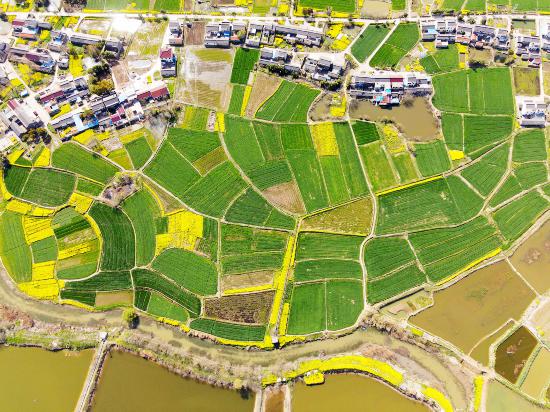 揚州:麥田和油菜花田組成春天“調(diào)色板”