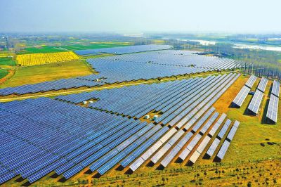 圖為正陽縣大林鎮(zhèn)軍耕家庭農場農光互補光伏電站項目。棚頂架上太陽能,棚內牛羊生長壯,菜花黃來桃花香,采摘果蔬又觀光……該項目正成為實現(xiàn)“農村美、農民富、農業(yè)強”的鄉(xiāng)村新景(3月28日攝)。高萬寶 攝