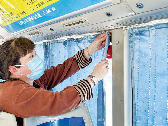 4月6日,金華市區(qū)523路公交車(chē)開(kāi)始安裝遮陽(yáng)簾。隨著天氣逐漸轉(zhuǎn)熱,金華金東所有公交車(chē)將陸續(xù)安裝上遮陽(yáng)簾。車(chē)隊(duì)長(zhǎng)周英飛說(shuō),安裝了遮陽(yáng)簾,乘車(chē)舒適度會(huì)大為改善。(李建林)