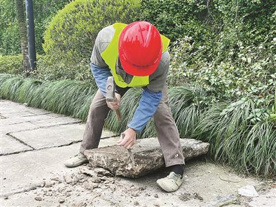 “我們秉持‘最小干預’的原則——結構層穩(wěn)定的老石板,原則上不修;需要修繕的老石板,則嚴格遵守‘修舊如舊、保留肌理’的原則。”杭州園林設計院股份有限公司相關負責人介紹,“一般兩種情況下才進行修復,一是樹池周邊起拱、松動嚴重,二是老石板破損、松動嚴重?!?/p>