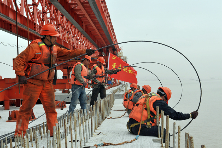 黨員先鋒突擊隊(duì)在魚山大橋建設(shè)現(xiàn)場(chǎng)。舟山市委組織部供圖