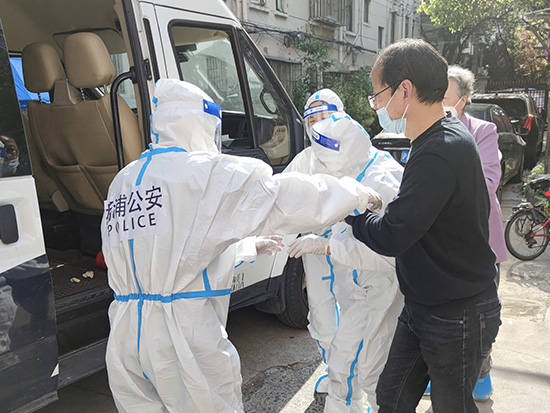 封控管理期間,要求普通市民足不出戶,要想轉運彭老伯去到他女兒家,首先就要確認清楚,彭老伯是否具備外出條件。據(jù)了解,彭老伯所在的樓棟,最近14天核酸檢測全部陰性。因接到求助時,楊浦區(qū)尚未通報“三區(qū)”安排,考慮到彭老伯的實際需求,四平路派出所立即聯(lián)系相關防疫部門,得到了可以在做好防護的情況下出小區(qū)的答復。
