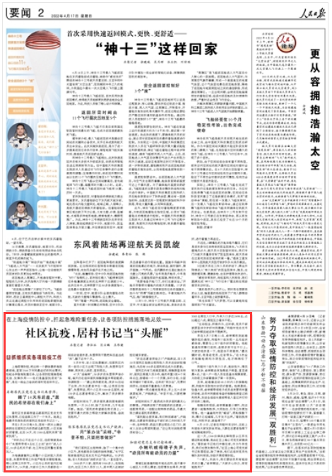 人民日報:社區(qū)抗疫,居村書記當(dāng)“頭雁”
