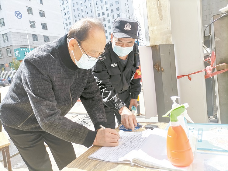 “安康苑小區(qū)住戶多,疫情防控責(zé)任重大?!标愪h利介紹說(shuō),按照防控要求,小區(qū)東西兩區(qū)各開(kāi)放一個(gè)出入口。住戶進(jìn)入須掃場(chǎng)所碼,查驗(yàn)兩碼,外來(lái)人員查驗(yàn)后須登記個(gè)人信息。許多住戶和他是老熟人,但執(zhí)行防控規(guī)定不能含糊。