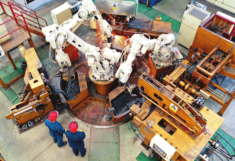 5月5日,在晉能控股裝備制造集團(tuán)華越華茂公司生產(chǎn)車間,國內(nèi)首套國產(chǎn)化礦用高強(qiáng)度圓環(huán)鏈全自動制鏈機(jī)組正在作業(yè)中。近年來,該公司不斷提升裝備能力,其生產(chǎn)的礦用高強(qiáng)度圓環(huán)鏈、緊湊鏈及各類工業(yè)用鏈條,工藝達(dá)到國內(nèi)領(lǐng)先水平。(記者劉通攝)