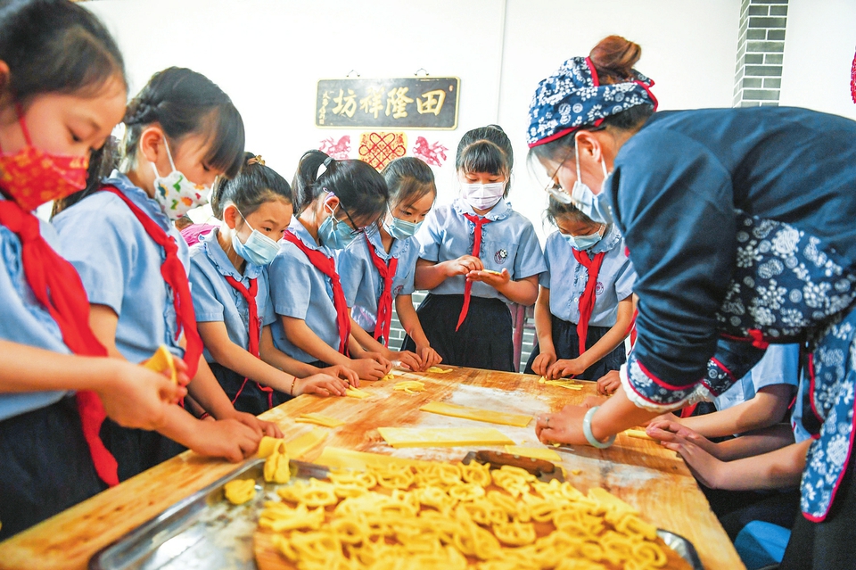 5月3日,平遙縣實(shí)驗(yàn)小學(xué)三年級463班的學(xué)生在平遙縣田隆祥油花花非遺傳學(xué)基地體驗(yàn)油花花、月餅等傳統(tǒng)食品的制作過程。“五一”期間,平遙縣實(shí)驗(yàn)小學(xué)在做好疫情防控的同時(shí),組織學(xué)生就地開展多種形式的非遺文化項(xiàng)目傳學(xué)活動,讓孩子們近距離感受非遺文化的魅力,豐富假期生活。(梁生仁攝)