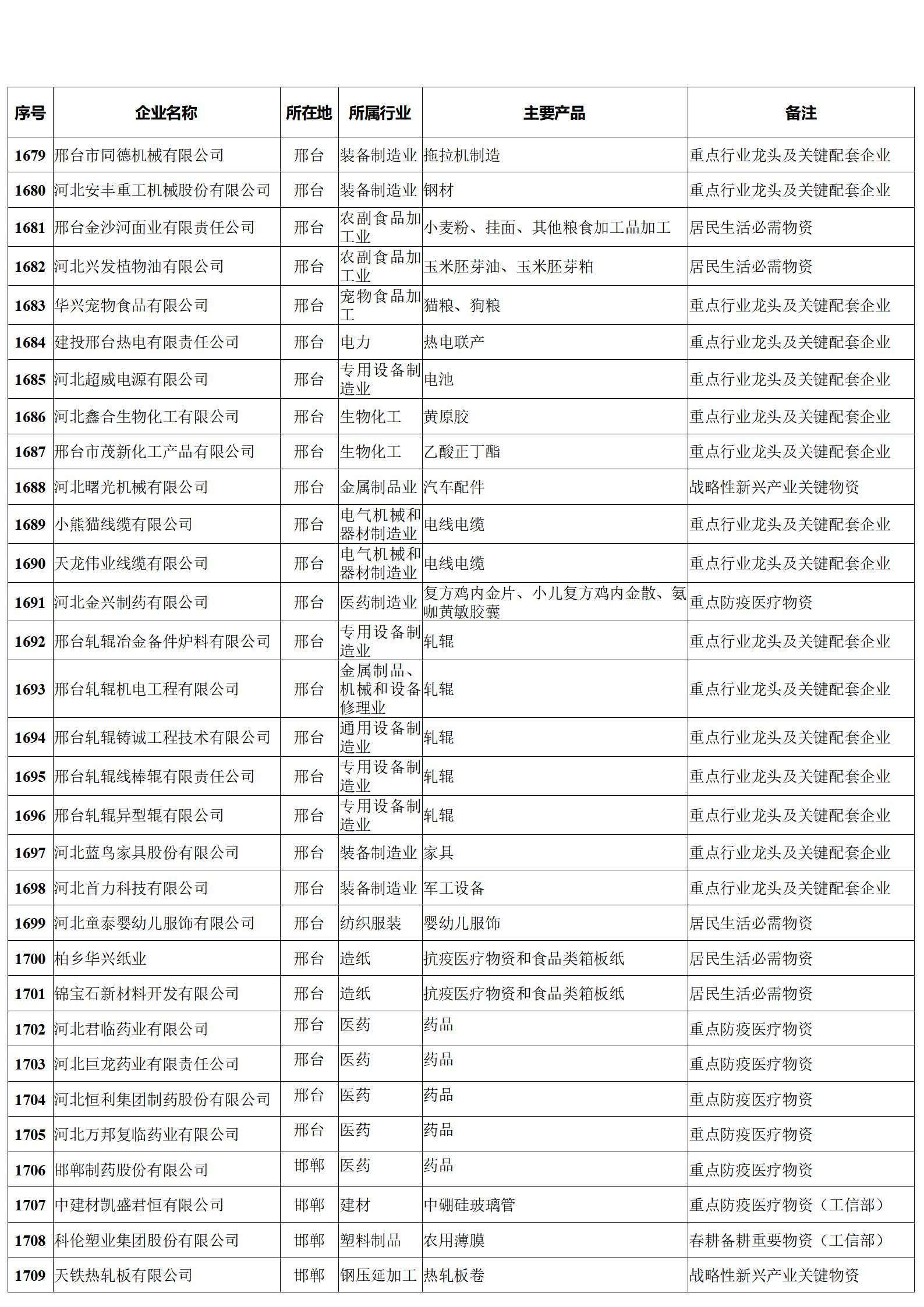 河北省重點(diǎn)產(chǎn)業(yè)鏈供應(yīng)鏈“白名單”企業(yè)