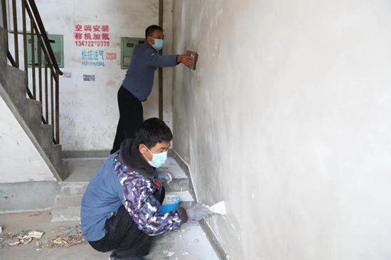 樓梯間粉刷、垃圾廣告清理、違規(guī)建筑拆除……5月10日,順平縣切削液廠南綜合樓小區(qū)里,老舊小區(qū)改造工程正如火如荼地開展。