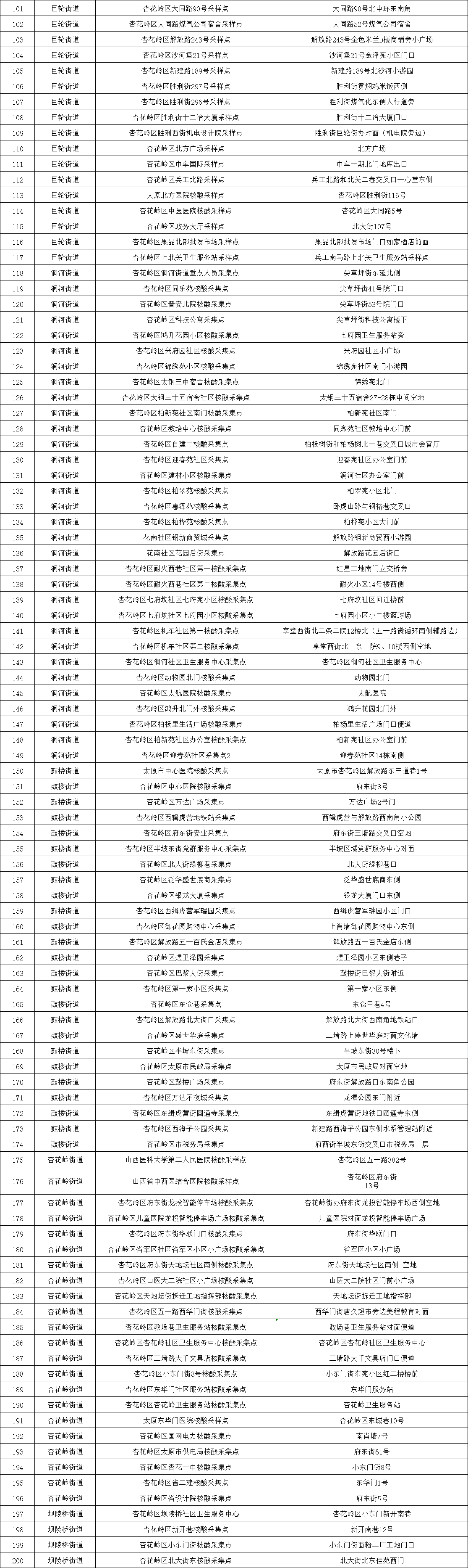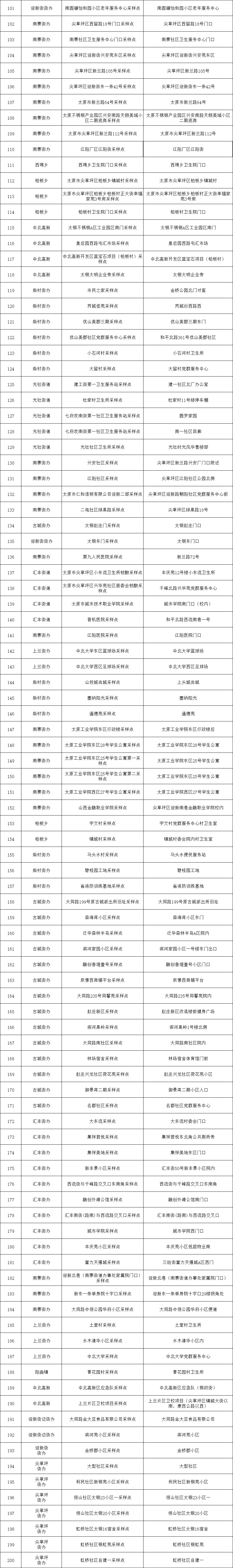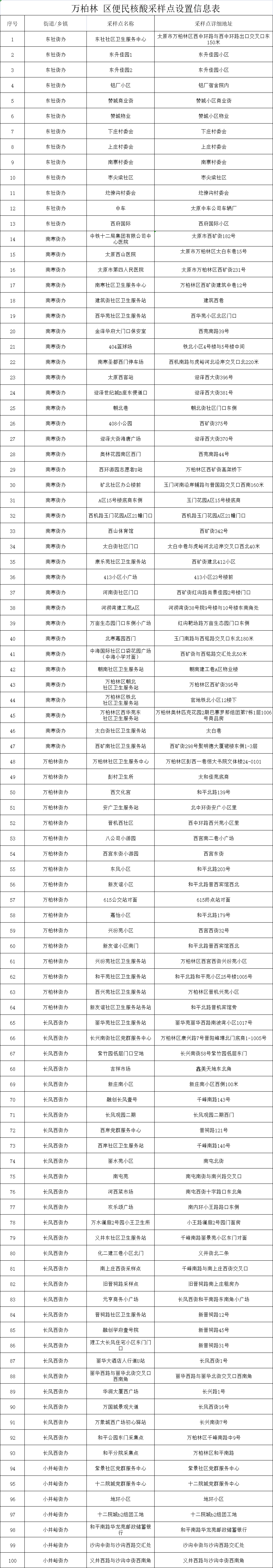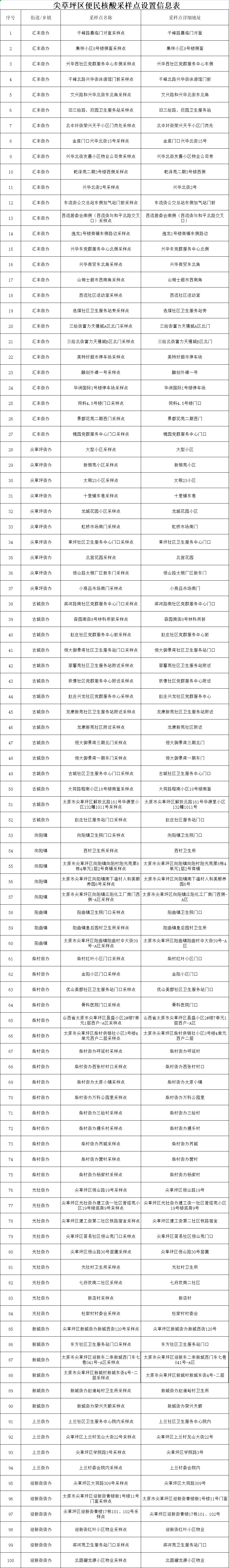 附:太原六城區(qū)便民核酸采樣點位