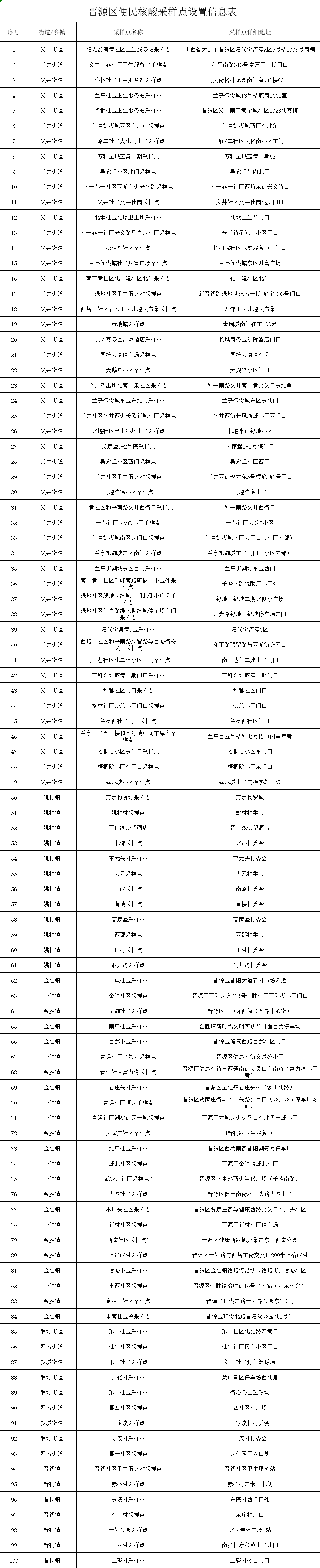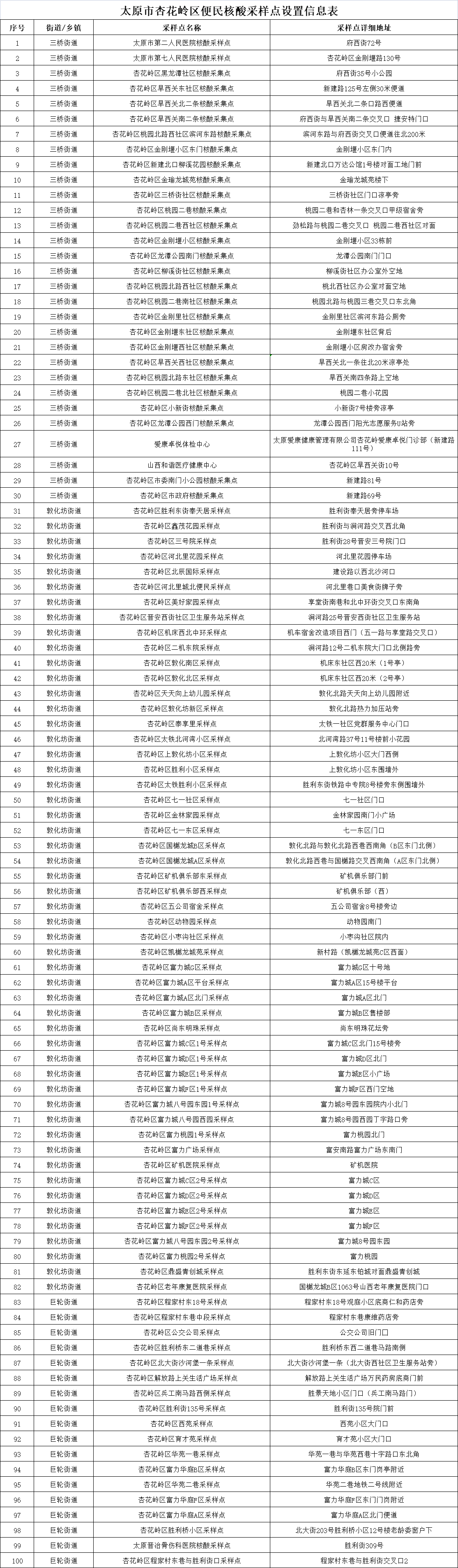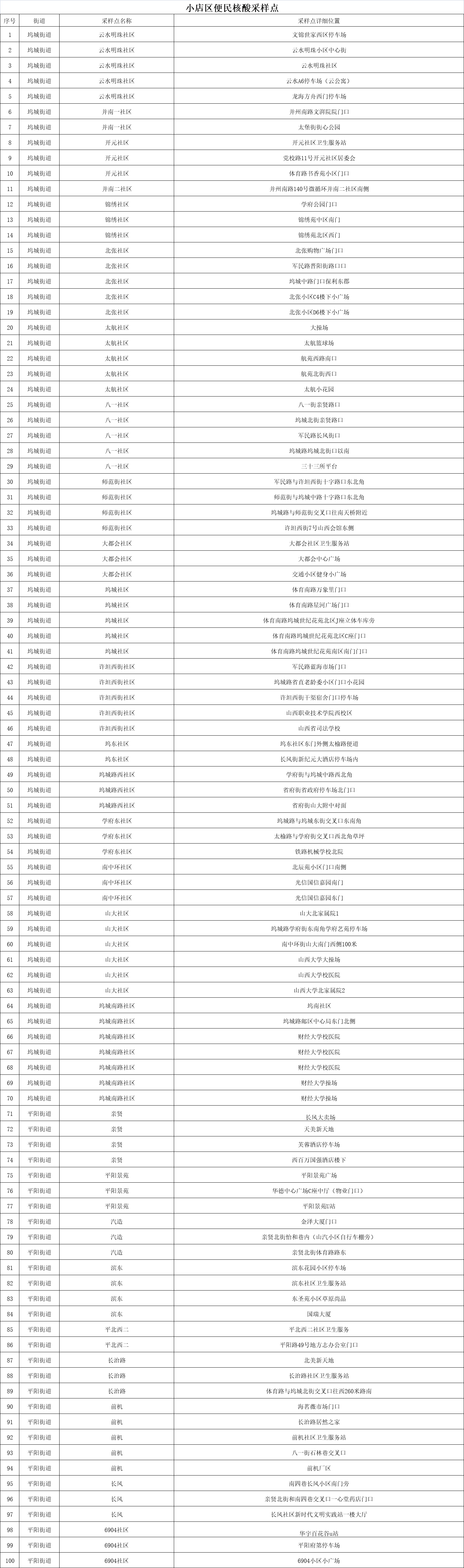 附:太原六城區(qū)便民核酸采樣點位