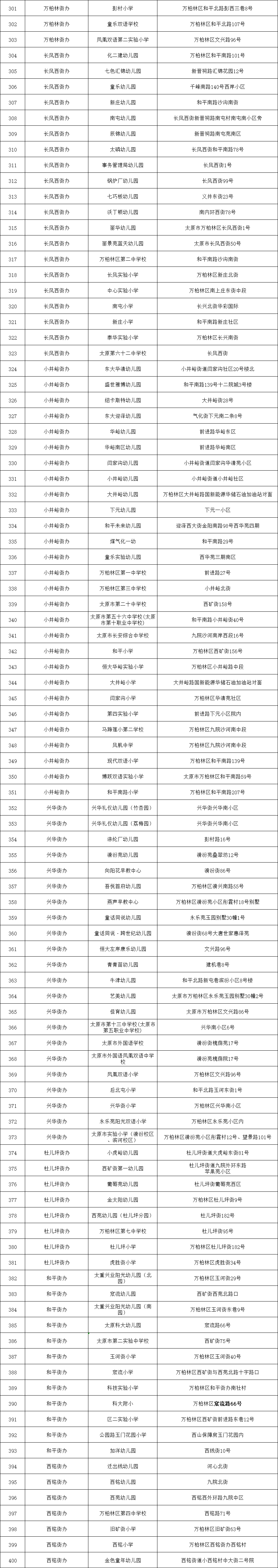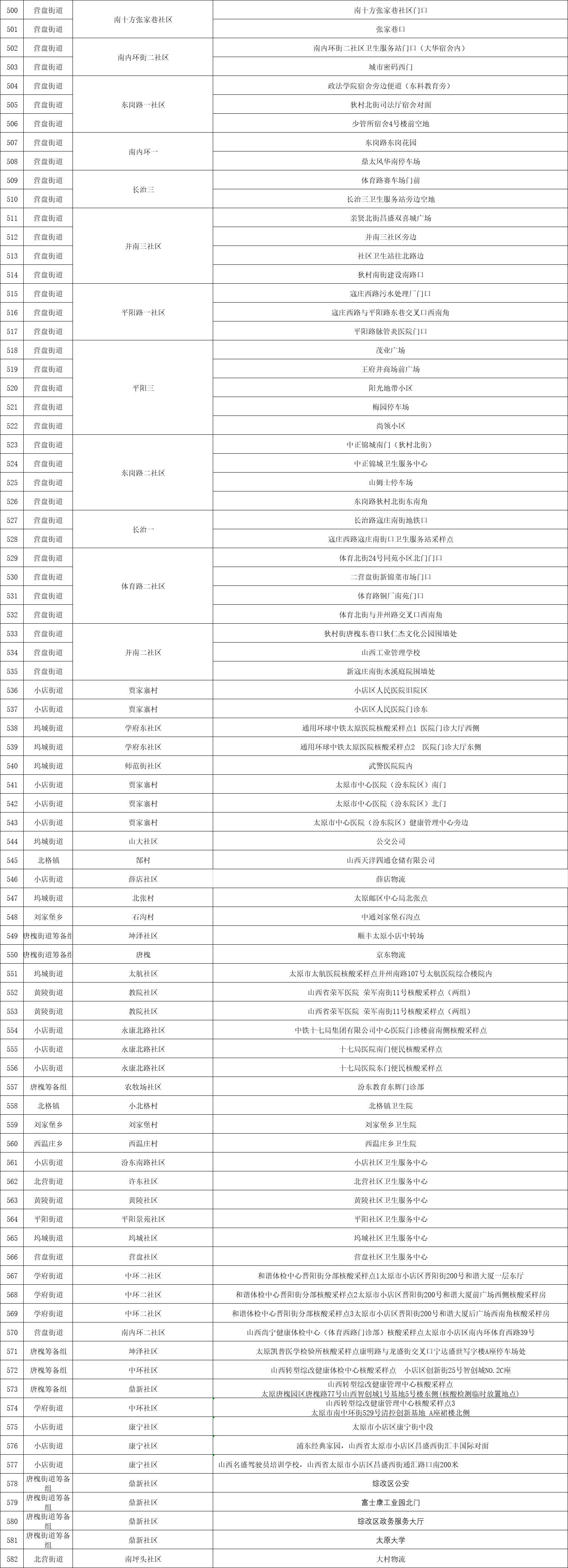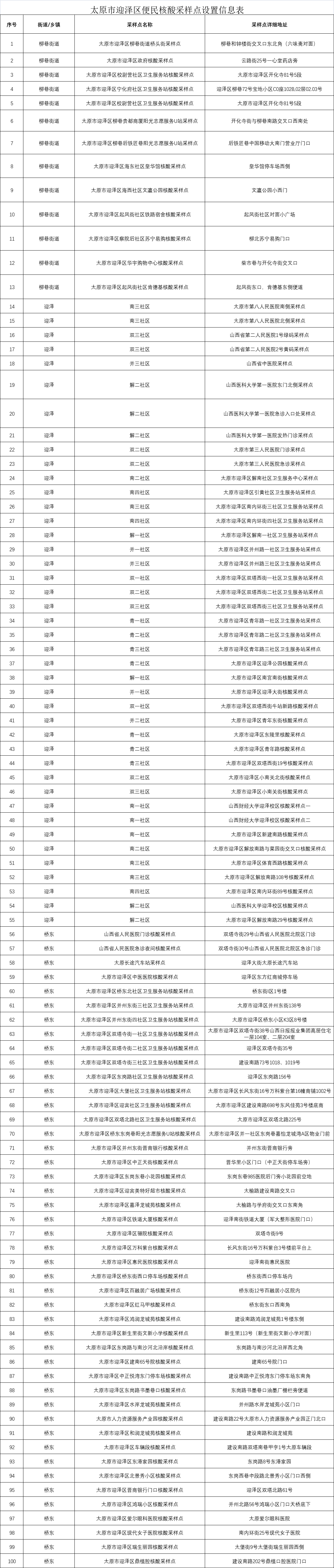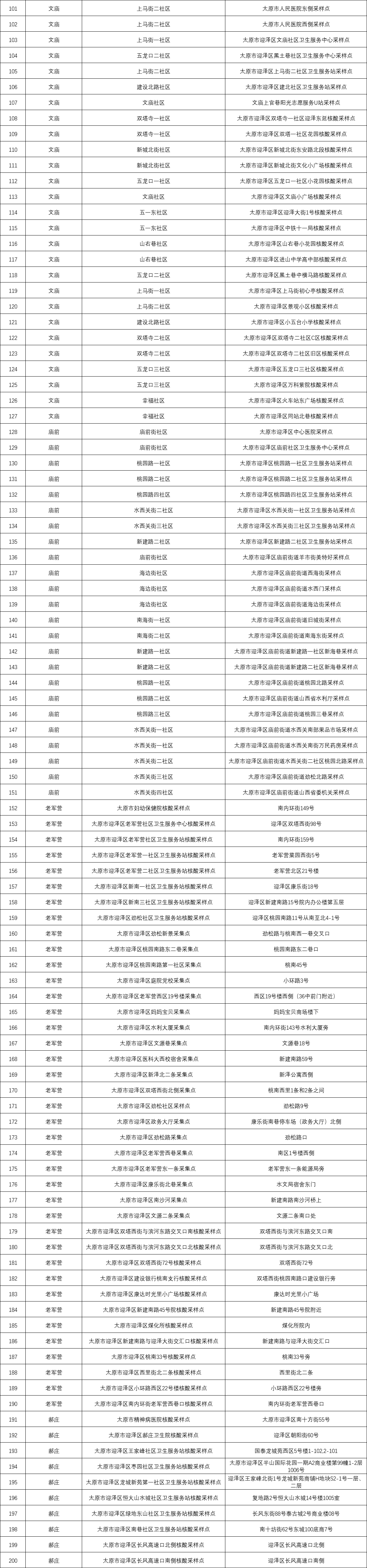 附:太原六城區(qū)便民核酸采樣點位