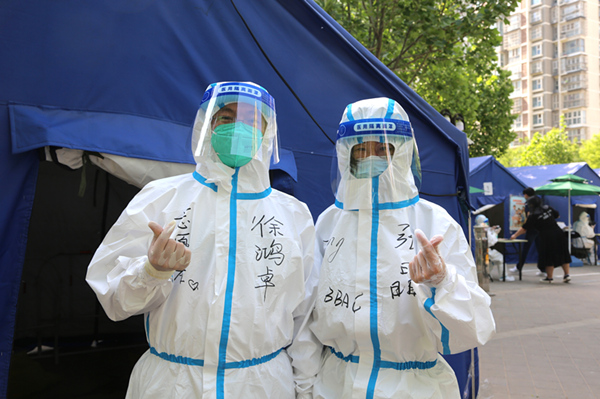 “第一天志愿工作完,我們兩個(gè)把在核酸現(xiàn)場(chǎng)工作的照片發(fā)到了家庭群,父母和孩子看到了后都為我們倆自豪,我們也感覺這一天志愿服務(wù)真得很充實(shí)?!毙禅欁空f道。