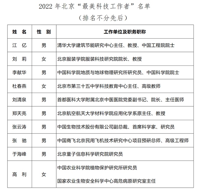 根據(jù)中央宣傳部、中國(guó)科協(xié)等六部門(mén)的文件要求,北京市委宣傳部,市科協(xié),市科委、中關(guān)村管委會(huì),市經(jīng)信局聯(lián)合下發(fā)了《關(guān)于開(kāi)展2022年北京“最美科技工作者”學(xué)習(xí)宣傳活動(dòng)的通知》,組織動(dòng)員各區(qū)各單位各部門(mén)積極參與北京“最美科技工作者”學(xué)習(xí)宣傳活動(dòng),經(jīng)過(guò)廣泛發(fā)動(dòng)、層層推薦、資格審核、專家遴選、社會(huì)公示等程序,10名同志當(dāng)選2022年北京“最美科技工作者”。