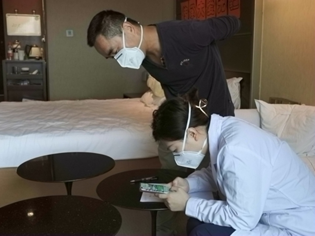 5月4日晚6點(diǎn)多,從香港求醫(yī)歸來的張氏夫婦懷抱著精神萎靡的哼哼,由機(jī)場大巴閉環(huán)轉(zhuǎn)運(yùn)至海淀區(qū)紅杉集中醫(yī)學(xué)隔離觀察點(diǎn),晚上8點(diǎn)半,到達(dá)酒店辦理入住。來自四季青醫(yī)院的張龍珍負(fù)責(zé)接待工作,豐富的工作經(jīng)驗(yàn)讓她第一時(shí)間注意到了被母親抱在懷中的哼哼,臉有一些不正常的浮腫,便上前詢問情況,得知他患有神經(jīng)母細(xì)胞瘤并轉(zhuǎn)移至腦部及全身時(shí),張龍珍便親自照顧起了這一家人,一步一步指導(dǎo)哼哼爸爸掃碼,填寫個(gè)人信息,并在前臺開放綠色通道,快速為他們辦理入住。