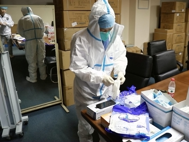 “有時(shí)候真的感覺很累,再加上穿的這些防護(hù)服也會(huì)缺氧,視線模糊。眼睛都是花的,但還是堅(jiān)持吧,盡可能地調(diào)節(jié)一下自己。其實(shí)也沒什么?!贬t(yī)護(hù)人員說道。