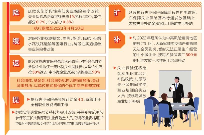 這次失業(yè)保險(xiǎn)新政重點(diǎn)圍繞“降、緩、返、提、擴(kuò)、補(bǔ)”等方面(詳細(xì)內(nèi)容見(jiàn)下圖)推出穩(wěn)崗位提技能防失業(yè)舉措。(記者高建華)