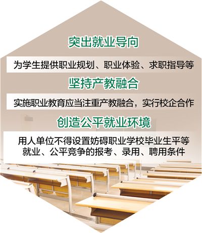 “職業(yè)教育是與普通教育具有同等重要地位的教育類型,是國民教育體系和人力資源開發(fā)的重要組成部分”,新修訂的職業(yè)教育法開宗明義,作出重要判斷——職業(yè)教育是“類型”教育,不是“層次”教育。類型教育的明確定位如同一根紅線,串起職業(yè)教育改革的方方面面,許多難題得以破解。