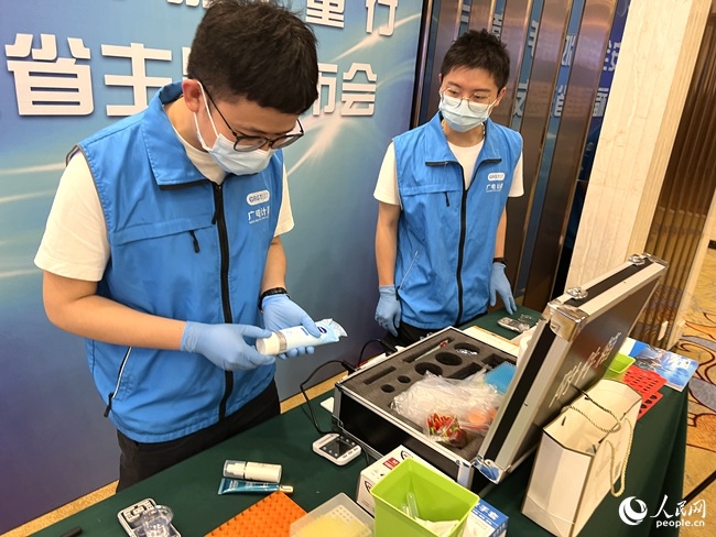 活動現(xiàn)場對消費者點名的化妝品產(chǎn)品進行快速檢測。人民網(wǎng) 吳舟攝
