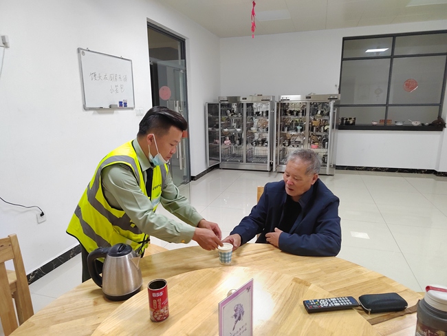 盡管黃爺爺腿腳不太利索,但臨走前,他堅(jiān)持著要起身送志愿者們到村口,一直看著大家紅彤彤的背影漸行漸遠(yuǎn)。