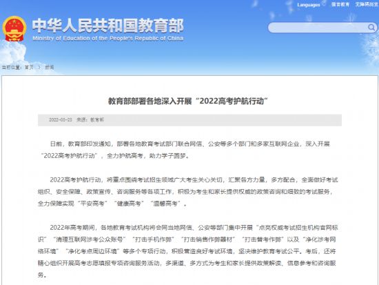 教育部部署各地深入開展“2022高考護(hù)航行動”