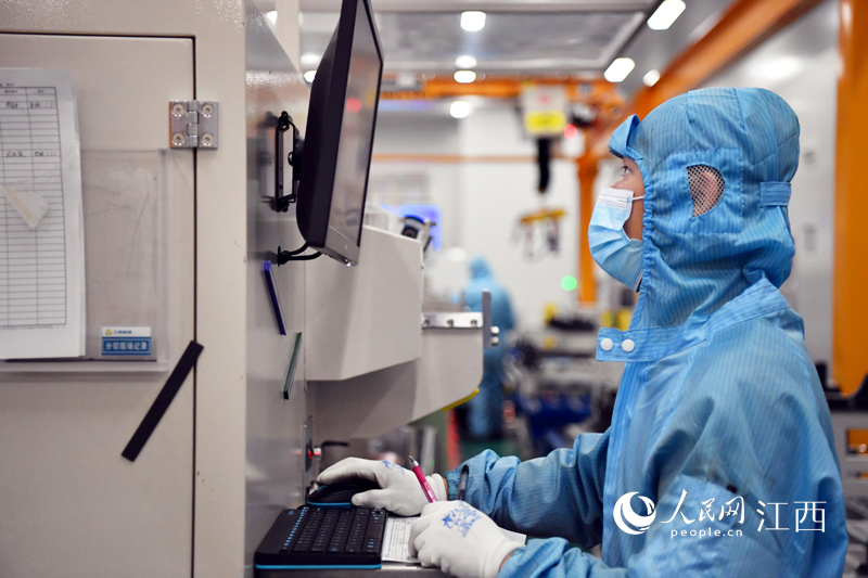 江銅集團(tuán)南昌高新產(chǎn)業(yè)園內(nèi)的工人正在車間內(nèi)作業(yè)。人民網(wǎng) 時(shí)雨攝