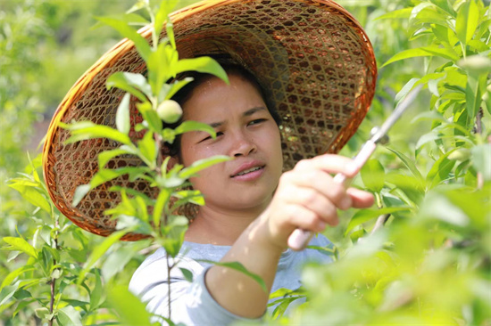 “今年是一個(gè)豐收年,我們正在給果園松土和縮果。等下個(gè)月底成熟了,歡迎大家來吃甜蜜蜜的黃桃。”東安縣大廟口樂福村,成片的黃桃進(jìn)入掛果期,唐云云站在“云端”,提前向網(wǎng)友發(fā)出豐收的邀請(qǐng)。