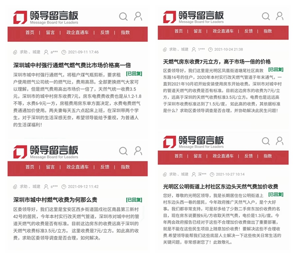 近年來,隨著深圳全力推進(jìn)城中村管道燃?xì)飧脑欤岸繓|”亂收燃?xì)赓M(fèi)的現(xiàn)象層出不窮。多位深圳網(wǎng)友曾在人民網(wǎng)“領(lǐng)導(dǎo)留言板”留言,反映房東收取的燃?xì)赓M(fèi)遠(yuǎn)高于《深圳市燃?xì)鈨r(jià)格制度標(biāo)準(zhǔn)》?!罢茝V天然氣入戶,是個(gè)大好事,我們都非常支持,可是卻給了少數(shù)二手房東加價(jià)收費(fèi)的名目?!币晃痪W(wǎng)友說。