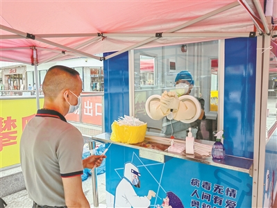 “不用擔心日曬雨淋、不用穿‘大白’、不用戴N95口罩、不用擔心被感染、不用連續(xù)工作六個小時……這樣的核酸采樣環(huán)境讓醫(yī)護人員心里暖暖的?!睆脑缟?點到中午12點連續(xù)采樣三個小時,正在進行交接工作的葉醫(yī)生告訴記者。