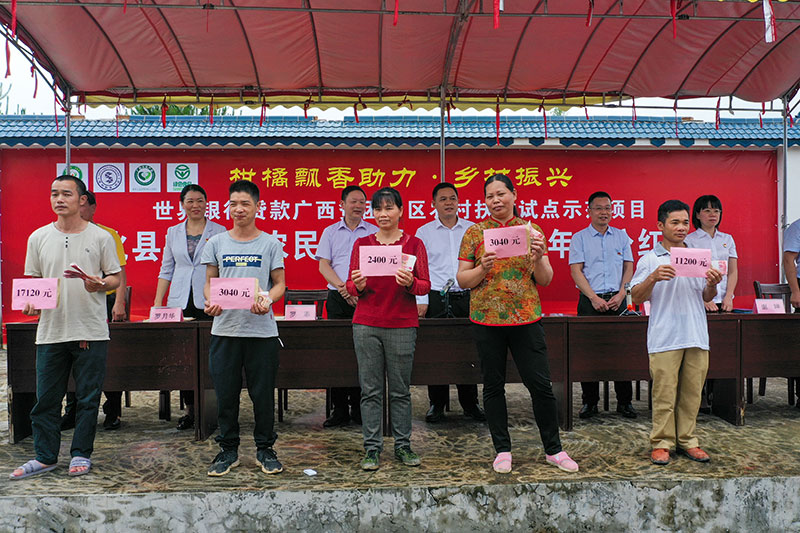 正在布置分紅現(xiàn)場的東皇嶺農(nóng)民專業(yè)合作社理事長覃順從說:“世行項目大化縣東皇嶺農(nóng)民專業(yè)合作社今天召開2021年年度分紅大會,給175戶入股社員發(fā)放80萬元分紅,下一步我們將和世行項目深入合作,擴大我們的農(nóng)業(yè)產(chǎn)業(yè)基地,實現(xiàn)鄉(xiāng)村振興農(nóng)民增收的雙贏目標?!?/p>