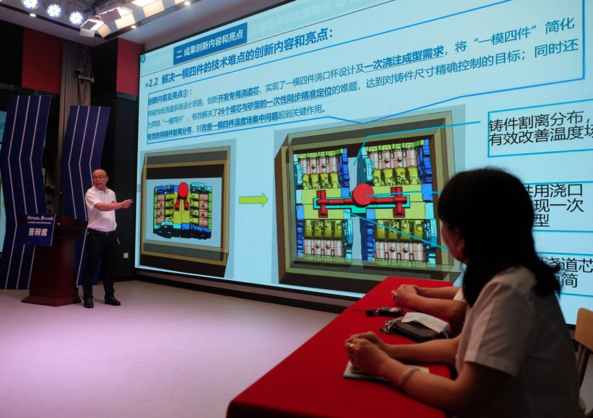 綠色生態(tài)座艙開發(fā)研究技術(shù)成果、變壓器套管換油裝置、高效率的一模四件發(fā)動(dòng)機(jī)缸體毛坯關(guān)鍵技術(shù)研究及成果轉(zhuǎn)化應(yīng)用、新能源退役動(dòng)力電池在SGMW制造系統(tǒng)梯次利用項(xiàng)目、重卷機(jī)組關(guān)鍵設(shè)備減時(shí)操作法……參加決賽的項(xiàng)目成果完成人采用PPT講解和現(xiàn)場答辯相結(jié)合的形式進(jìn)行對決。項(xiàng)目答辯人就項(xiàng)目立項(xiàng)背景、成果創(chuàng)新內(nèi)容和亮點(diǎn)、成果采納實(shí)施情況、經(jīng)濟(jì)效益、社會(huì)效益、獲獎(jiǎng)情況等進(jìn)行了介紹,并圍繞創(chuàng)新成果的創(chuàng)新性、原創(chuàng)性、成果應(yīng)用成熟性、質(zhì)量可靠性、成果的先進(jìn)程度、成果技術(shù)水平和難易程度、成果提高勞動(dòng)生產(chǎn)效率作用、經(jīng)濟(jì)效益、社會(huì)效益、成果的適用范圍和推廣前景等方面回答評委的提問。