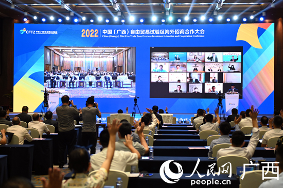 人民網(wǎng)南寧5月27日電 (記者彭遠(yuǎn)賀)5月27日下午,2022中國(廣西)自由貿(mào)易試驗區(qū)海外招商合作大會在南寧舉行。大會公布了首批五位“廣西自貿(mào)招商大使”名單并頒發(fā)聘任證書。
