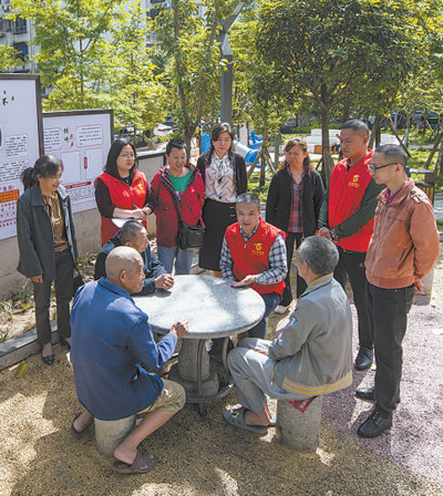 辦法,在一次次走訪中商議出來(lái)。2019年5月,萬(wàn)安社區(qū)開(kāi)始推行樓棟工作日機(jī)制,社區(qū)干部、中關(guān)園小區(qū)樓棟長(zhǎng)堅(jiān)持入戶走訪,幾位“有意見(jiàn)”的老黨員、老住戶是重點(diǎn)走訪對(duì)象。幾番走訪交流下來(lái),萬(wàn)安社區(qū)黨委書記、居委會(huì)主任姜正國(guó)頗受觸動(dòng):“這些老黨員、老住戶有情緒,但更有熱情、熱心,關(guān)心小區(qū)發(fā)展。為什么不把他們調(diào)動(dòng)起來(lái)參與小區(qū)治理?這也符合樓棟工作日的要求,帶動(dòng)社區(qū)居民等多元力量參與,引導(dǎo)社區(qū)居民協(xié)商解決社區(qū)公共事務(wù)。”