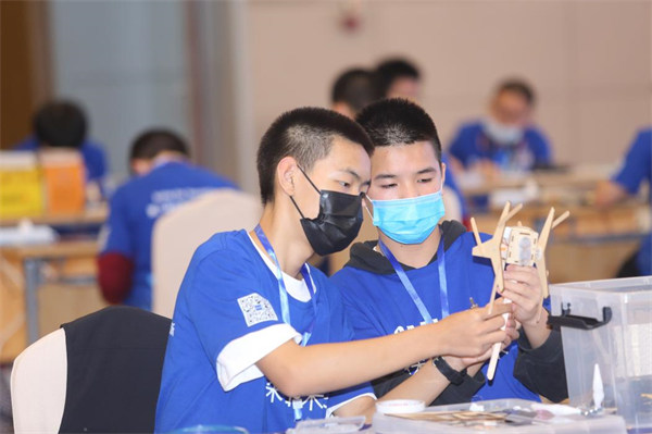 未來太空車復賽由現(xiàn)場制作和障礙物攀爬兩部分組成,參賽隊伍需在規(guī)定時間內(nèi)完成太空車制作并通過尺寸核驗,最后通過三輪障礙物攀爬比賽決出勝負。比賽中,參賽隊伍以問題為導向,在充分考慮“太空車”爬行動力支撐、速度、阻力、摩擦力等制約因素下,進行裝置的拼裝及改裝,隨著“太空車”一個接一個地翻越過障礙物,現(xiàn)場同學們紛紛送上喝彩。