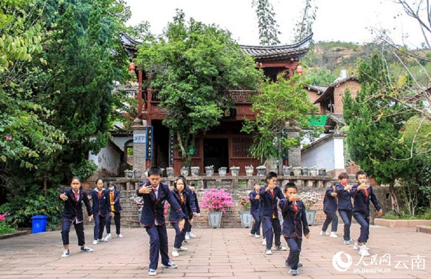 在云南省大理州云龍縣寶豐鄉(xiāng),穿過一條青石鋪就的古樸街道,走進(jìn)青瓦白墻的寶豐中心完全小學(xué)校門,便聽見一聲聲鏗鏘有力的鼓點(diǎn)。