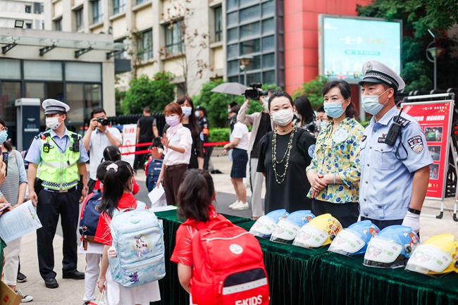 “‘一盔一帶’安全守護行動在全國已推行有兩年時間,有效促進了人們安全習慣的養(yǎng)成。此次,我們與交警部門聯(lián)合活動,希望能讓每一個細小的安全行為都能持久地落地。”高新一小校長劉英明現(xiàn)場接受采訪時說道。