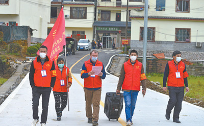 伊恩(左三)參加村里的疫情防控宣傳志愿服務(wù)工作。