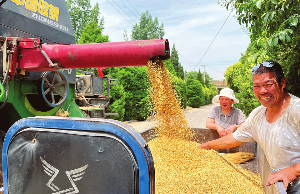 5月31日,侯馬市上馬街道,聯(lián)合收割機(jī)正在作業(yè)。近日,臨汾市300余萬畝小麥陸續(xù)進(jìn)入收割期,各地?fù)屪マr(nóng)時(shí),確保顆粒歸倉(cāng)。李現(xiàn)俊攝