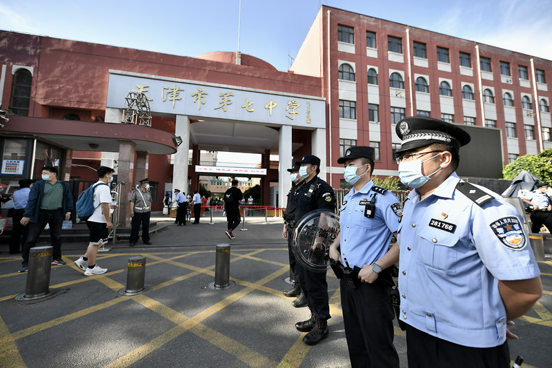 天津市公安局河?xùn)|分局加大工作力度,維持考場周邊區(qū)域治安秩序。河?xùn)|區(qū)供圖