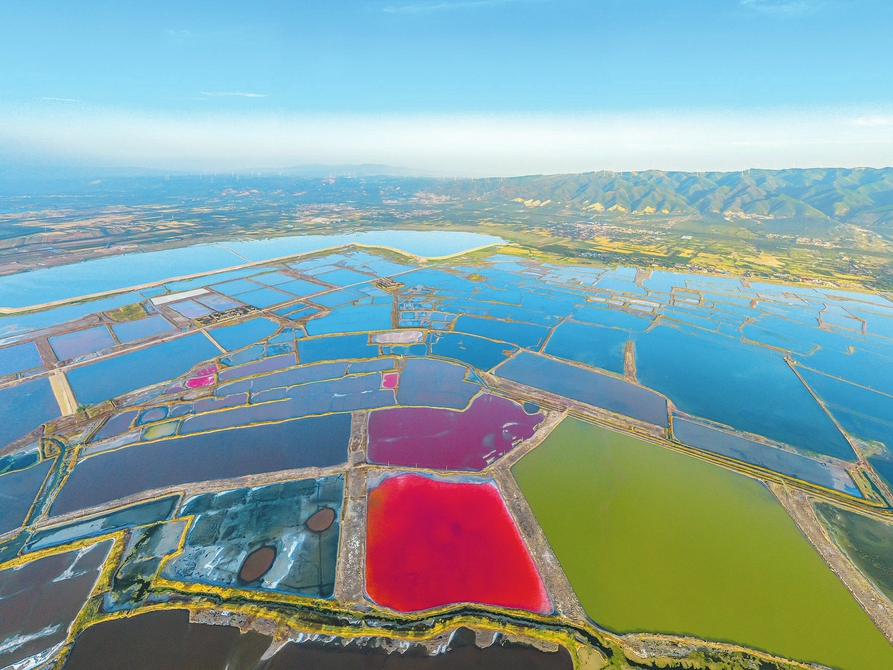 仲夏時(shí)節(jié),隨著氣溫升高,運(yùn)城鹽湖濕地呈現(xiàn)出色彩斑斕的美麗景觀。近年來(lái),運(yùn)城市大力實(shí)施“退鹽還湖”“還湖于民”生態(tài)修復(fù)工程,把鹽湖從礦區(qū)、工業(yè)區(qū)變?yōu)樯鷳B(tài)保護(hù)區(qū)、旅游區(qū)。(閆鑫攝)