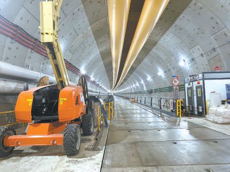 路面尚未攤鋪瀝青的西線隧道,整體走向也不是完全筆直平坦,而是帶有一些彎道、上下坡。車行約10分鐘,記者來(lái)到了“京華號(hào)”的尾部,在技術(shù)人員的遙控下,專業(yè)設(shè)備運(yùn)轉(zhuǎn)起來(lái),用混凝土管片給隧道“貼磚”?!斑@是盾構(gòu)機(jī)每向前推進(jìn)兩米,便要完成的一個(gè)步驟?!笔装l(fā)建設(shè)公司東六環(huán)項(xiàng)目管理處專業(yè)工程師郭琪說(shuō),盾構(gòu)掘進(jìn)過(guò)程中,可以同時(shí)完成開(kāi)挖、排土、碎石、出渣、支護(hù)、襯砌、封固等工序,實(shí)現(xiàn)隧道主體一次性成型。