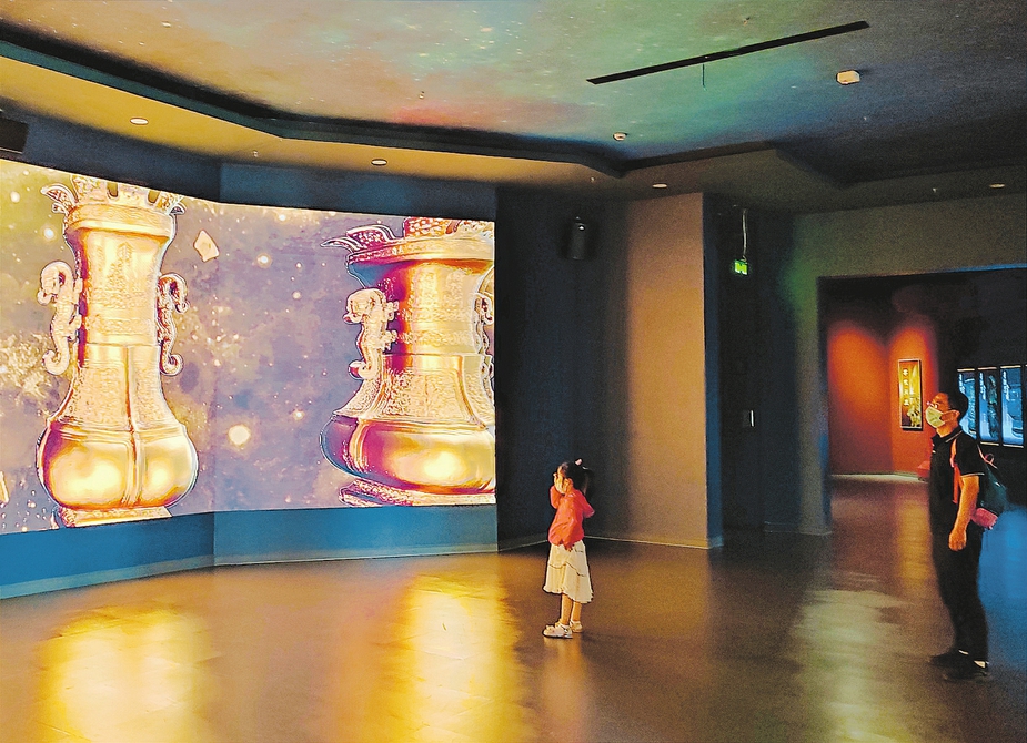 6月17日,太原市博物館數(shù)字青銅館,展廳通過借助數(shù)字化多媒體技術,讓觀眾沉浸式體驗中國青銅文化藝術之美。(記者王瑞瑞攝)
