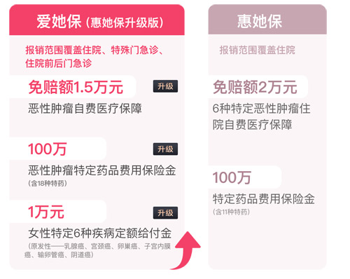 特藥數(shù)量從去年的11種國(guó)內(nèi)特藥拓展至今年的18種海內(nèi)外特藥,覆蓋乳腺癌、卵巢癌、輸卵管癌等女性高發(fā)癌癥,0免賠額,報(bào)銷比例為90%,最高保額100萬(wàn)元。