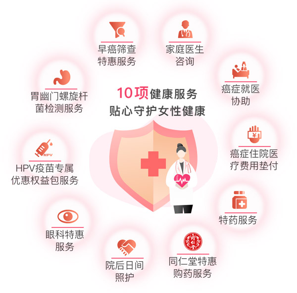 此外,“愛(ài)她?!边€為參保人提供HPV疫苗預(yù)約服務(wù)、胃幽門螺旋桿菌檢測(cè)服務(wù)、早癌篩查特惠服務(wù)、家庭醫(yī)生咨詢、癌癥就醫(yī)協(xié)助、癌癥住院醫(yī)療費(fèi)用墊付、特藥服務(wù)、同仁堂購(gòu)藥特惠服務(wù)、院后日間照護(hù)等10項(xiàng)健康服務(wù),為女性和家人的健康全面保駕護(hù)航。
