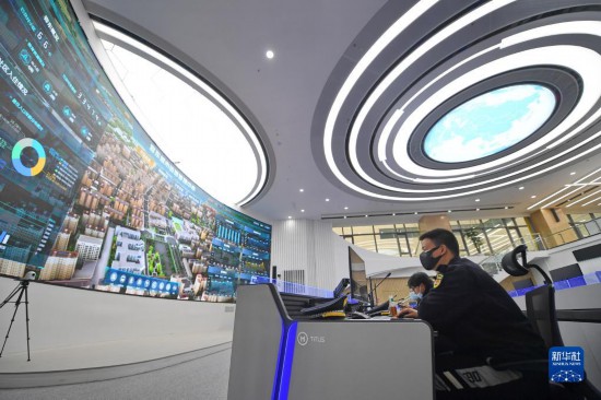工作人員在雄安新區(qū)容東城市運(yùn)營管理中心監(jiān)管平臺工作(2022年3月29日攝)。新華社記者 朱旭東 攝